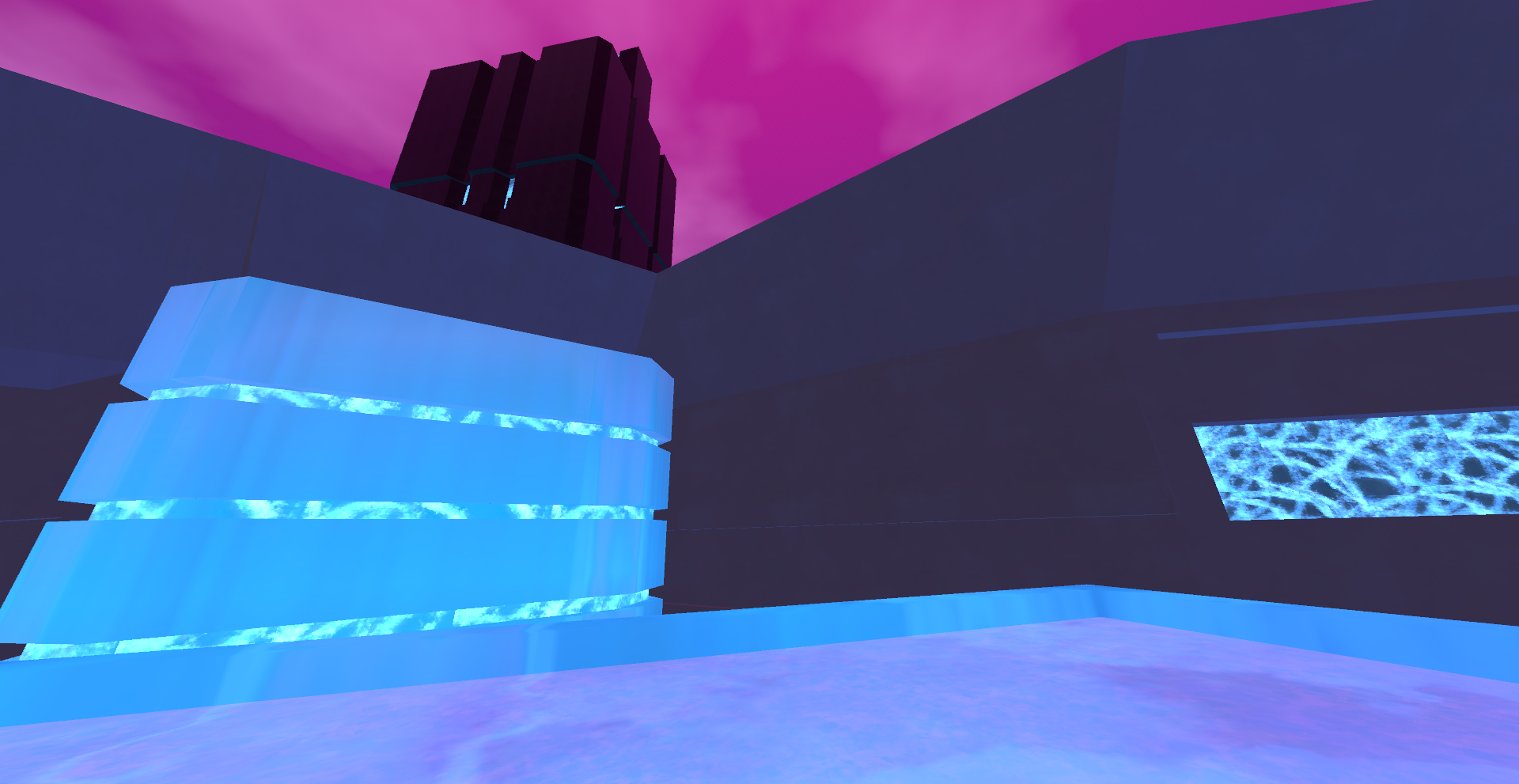 A short game where you platform at high speeds, trying to reach the enormous building towering over the city. Use the slick light blue liquid to gain more momentum!